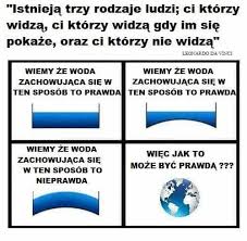 zefciu napisał(a): A na pytanie o spację przed kropką nie odpowiedziałeś. Widać, nie masz żadnej kontroli nad tym co robisz. Zacznę od pierdół. Większośc odpowiedzi pisze w pracy. Dyktuje do smartfona albo pisze w wolnej chwili. Nie ma czasu wtedy na sprawdzenie dokładnosci pisania i znaków interpunkcyjnych . Więc jesli nie masz wiekszysch problemów niz spacja przed kropka to gratuluję samopoczucia. Teraz do meritum . Widze że wieksszosc z was nauczono w szkole formułek, równań i definicji . Nie nauczono was tylko myśleć samodzielnie. Trzeba do was pisac jak do dzieci z pierwszej klasy . Albo udajecie idiotów . Ale zakładam że nie rozumiecie więc zacznę pisac jak do pierwszoklasistów. Pokaże tez kolorowanki abyście moglui sobie porysowac i pokolorowac obrazki. Cytuj: woda jest zawsze płaska. Nie. Kropla wody jest kulista. A w napełnionej po brzegi szklance mamy menisk. Zatem woda nie jest zawsze płaska.